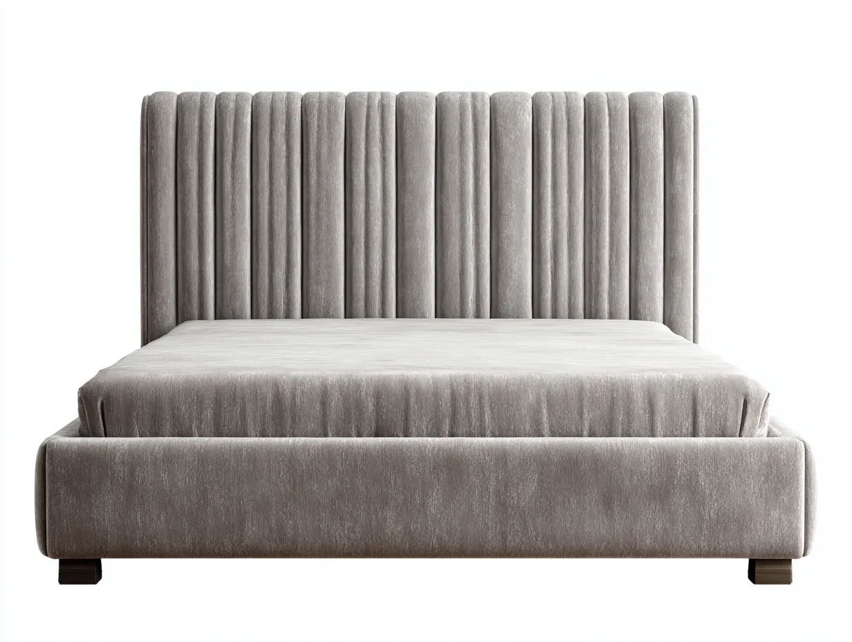 Dieses Doppelbett ist für das Schlafzimmer konzipiert und verbindet eine klare moderne Form mit einem weich gepolsterten Aufbau. Das hohe Kopfteil mit vertikaler Struktur verleiht dem Bett eine ruhige und elegante Wirkung und schafft einen komfortablen Bereich zum Anlehnen. Die ausgewogene Proportion passt gut zu modernen Wohnkonzepten und unterstützt eine hochwertige Raumgestaltung.
