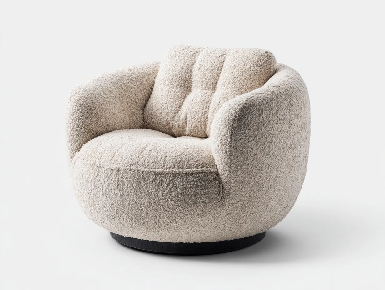 Dieser Loungesessel bietet eine komfortable Sitzlösung für Wohnbereiche, Schlafzimmer oder entspannte Rückzugsorte. Die weiche, gerundete Form unterstützt eine angenehme Sitzhaltung und fügt sich harmonisch in moderne Einrichtungen ein. Durch seine kompakte Bauweise eignet sich das Modell auch für kleinere Räume.