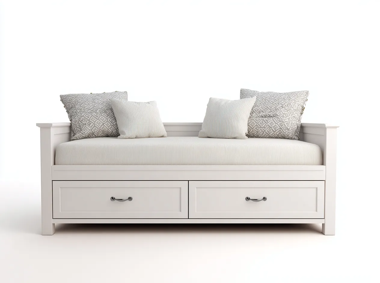 Die großzügige Liegefläche ermöglicht sowohl bequemes Sitzen als auch entspanntes Liegen. Der integrierte Stauraumbereich im unteren Teil unterstützt eine ordentliche Aufbewahrung von Alltagsgegenständen und trägt zu einer aufgeräumten Umgebung bei.