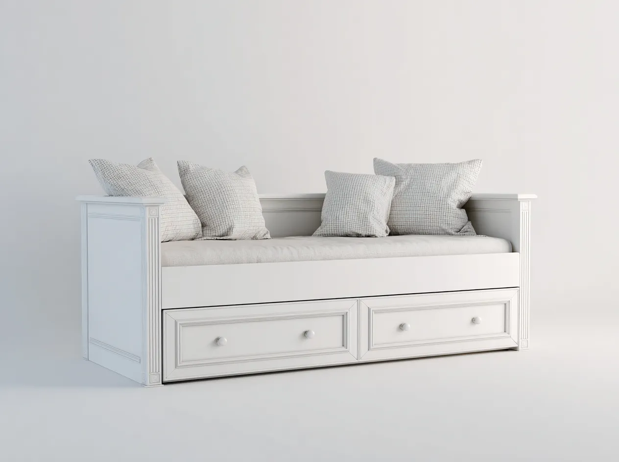 Die komfortable Liegefläche ermöglicht eine flexible Nutzung zum Sitzen oder Ruhen. Der integrierte Stauraumbereich im unteren Teil schafft zusätzlichen Platz für Alltagsgegenstände und trägt zu einer aufgeräumten Umgebung bei.